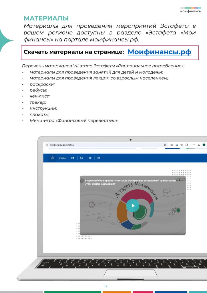 Участников ждут полезные материалы и активности: видео с финансовыми экспертами и блогерами; памятки, инструкции и чек-листы, которые можно скачать и распечатать; ребусы, раскраски и мини-игры по теме рационального потребления — для самостоятельного использования и мероприятий по финансовой грамотности.Традиционно будет запущен тест, по итогам которого можно проверить свои знания, получить именной сертификат и повысить рейтинг своего региона.