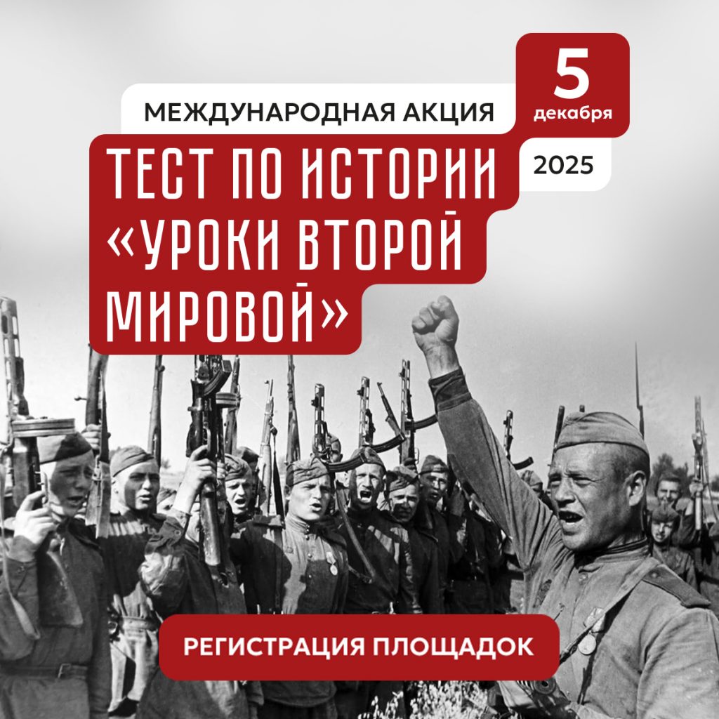 5 декабря в 11:00 (МСК) по всей России пройдет Международная акция Российского военно-исторического общества «Тест по истории «Уроки Второй мировой».