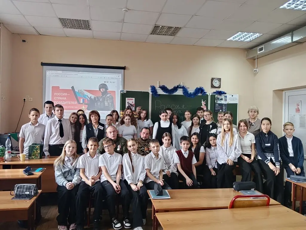 В преддверии этой даты в школе N1 им. Б. П. Юркова прошла встреча учащихся с участниками СВО Николаем Поповым и Евгением Войновым. Также гостьей нашей школы стала социальный координатор фонда «Защитники Отечества» Ирина Юрьевна Трухинцова.
