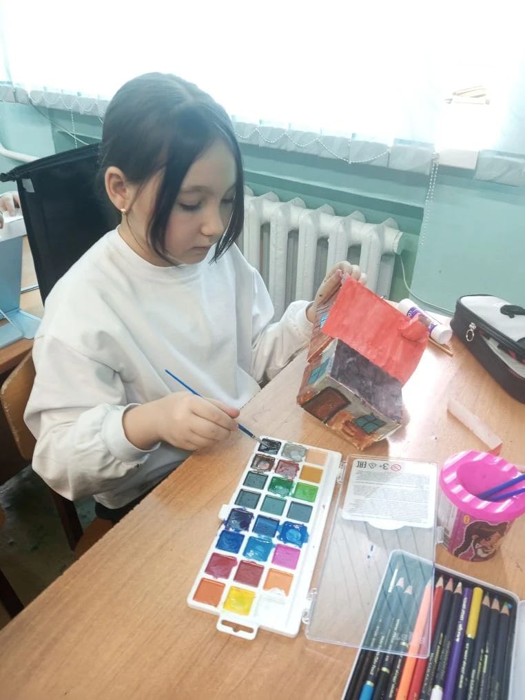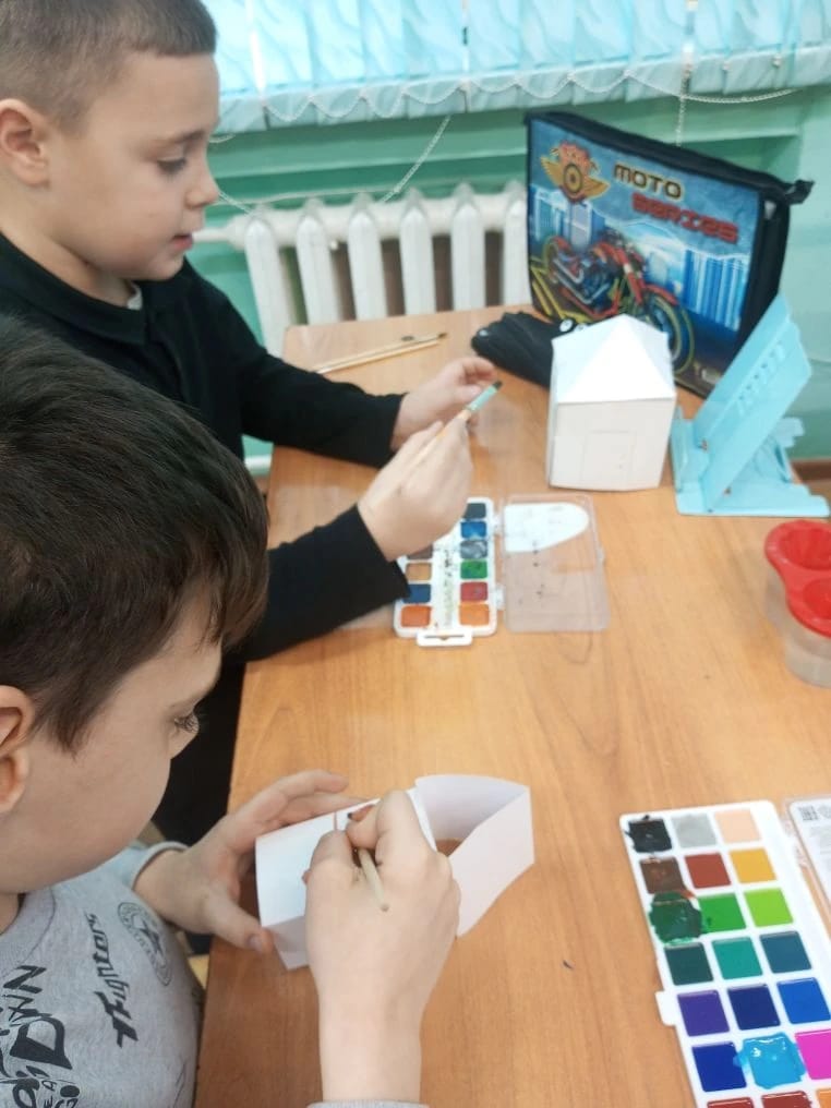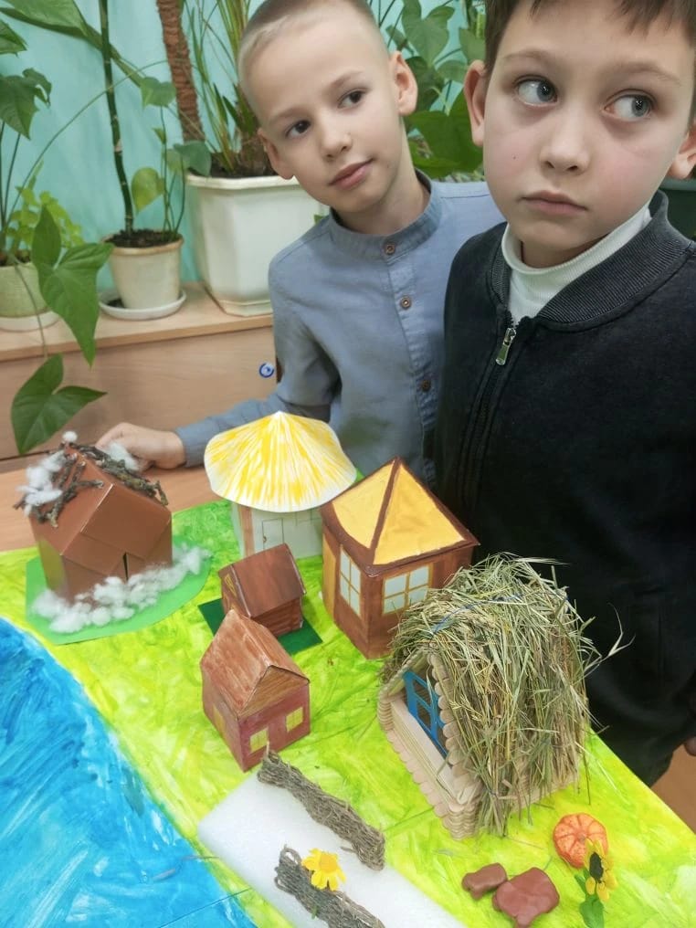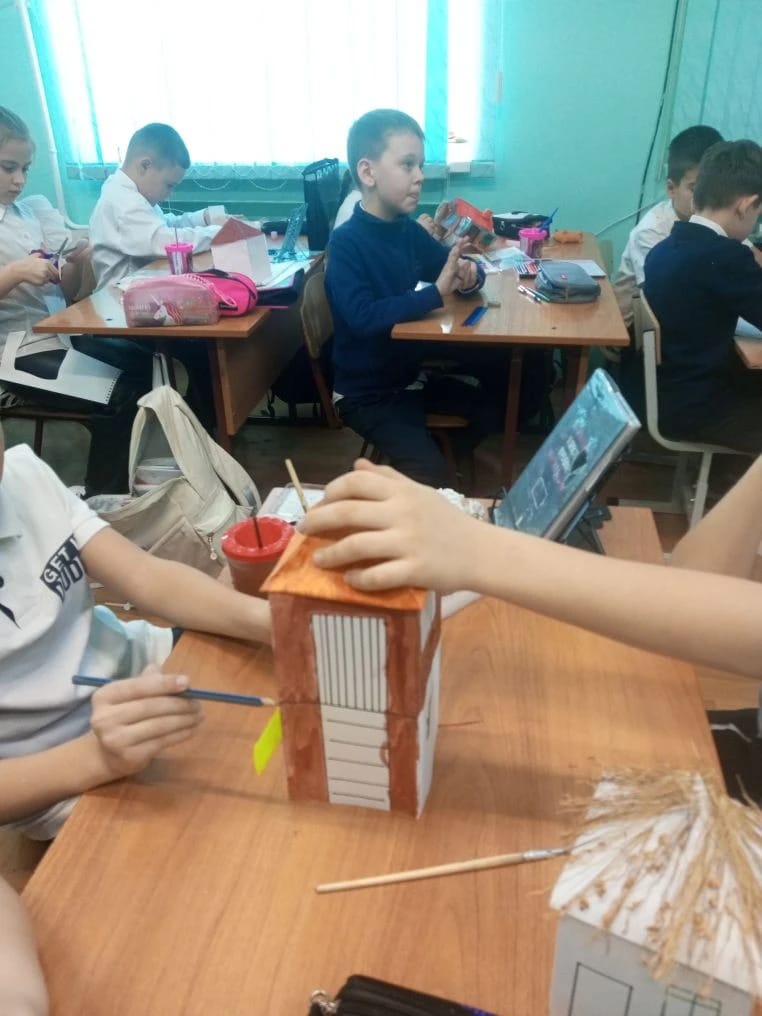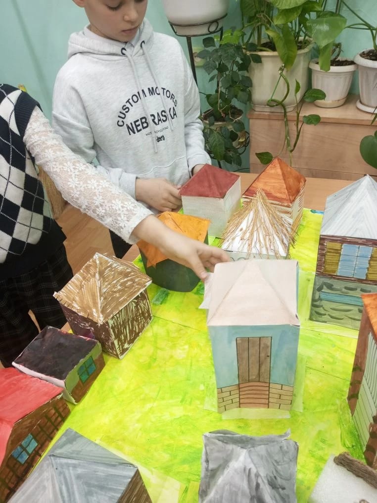 На занятии кружка «Доноведение» обучающиеся 3 А класса спроектировали зимний вариант нашего донского поселения. В нашей казачьей станице куреня и хаты в зимний период перед Новым годом.